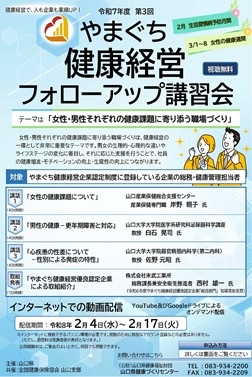 | 01月31日 | 「やまぐち健康経営フォローアップ講習会」を開催します。 |