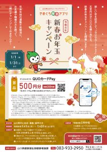 新しい年を記念して、「やまぐち健幸アプリ」でデジタルギフト「QUOカードPay」500円分が抽選で200名様に当たる、新春お年玉キャンペーンを開催します!
